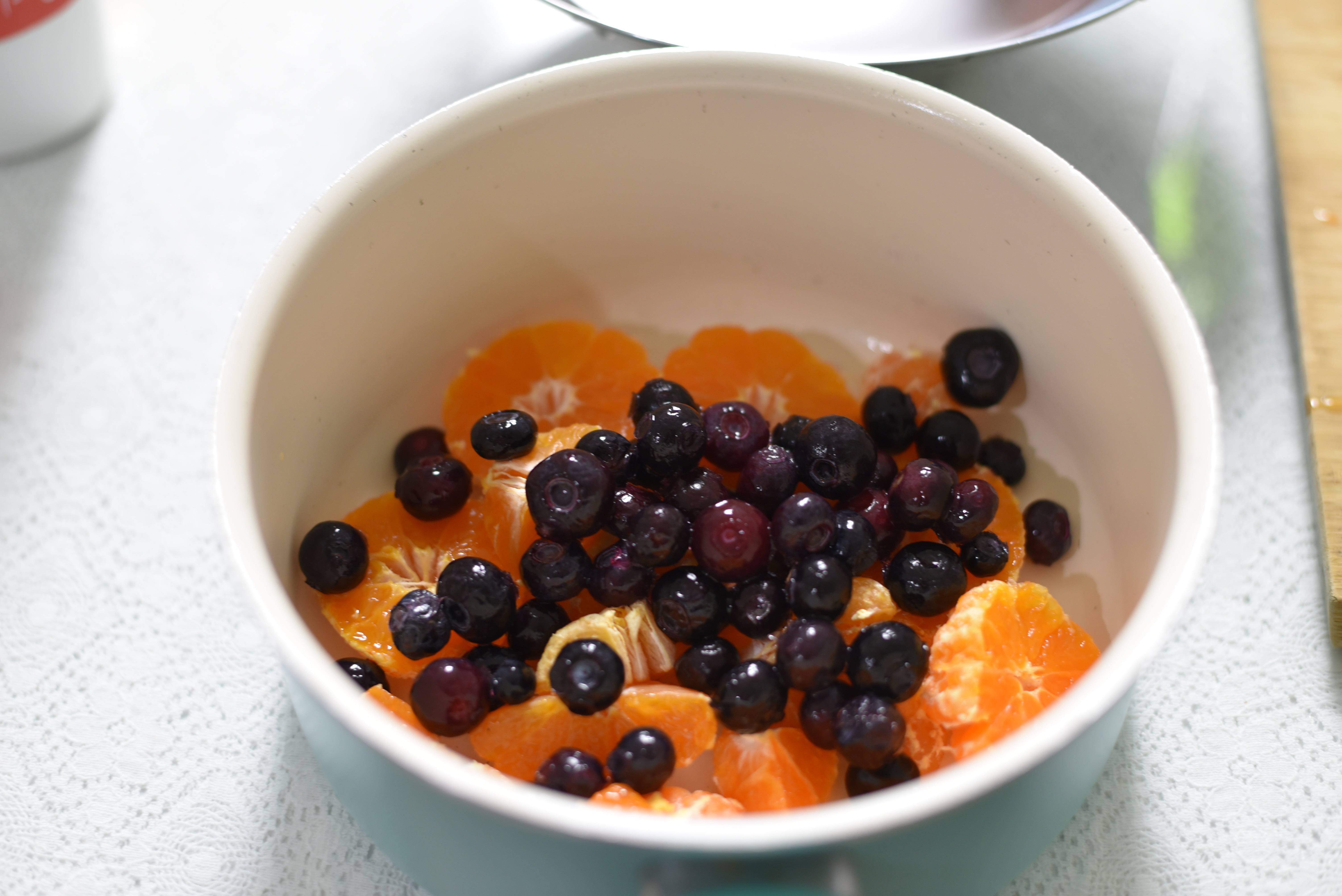 오래되어 시들한 귤의 껍질은 포기하고 알맹이만 남겨주었어요. 블루베리도 다 먹고 질려버려 남은 양을 모두 준비해 주었답니다.