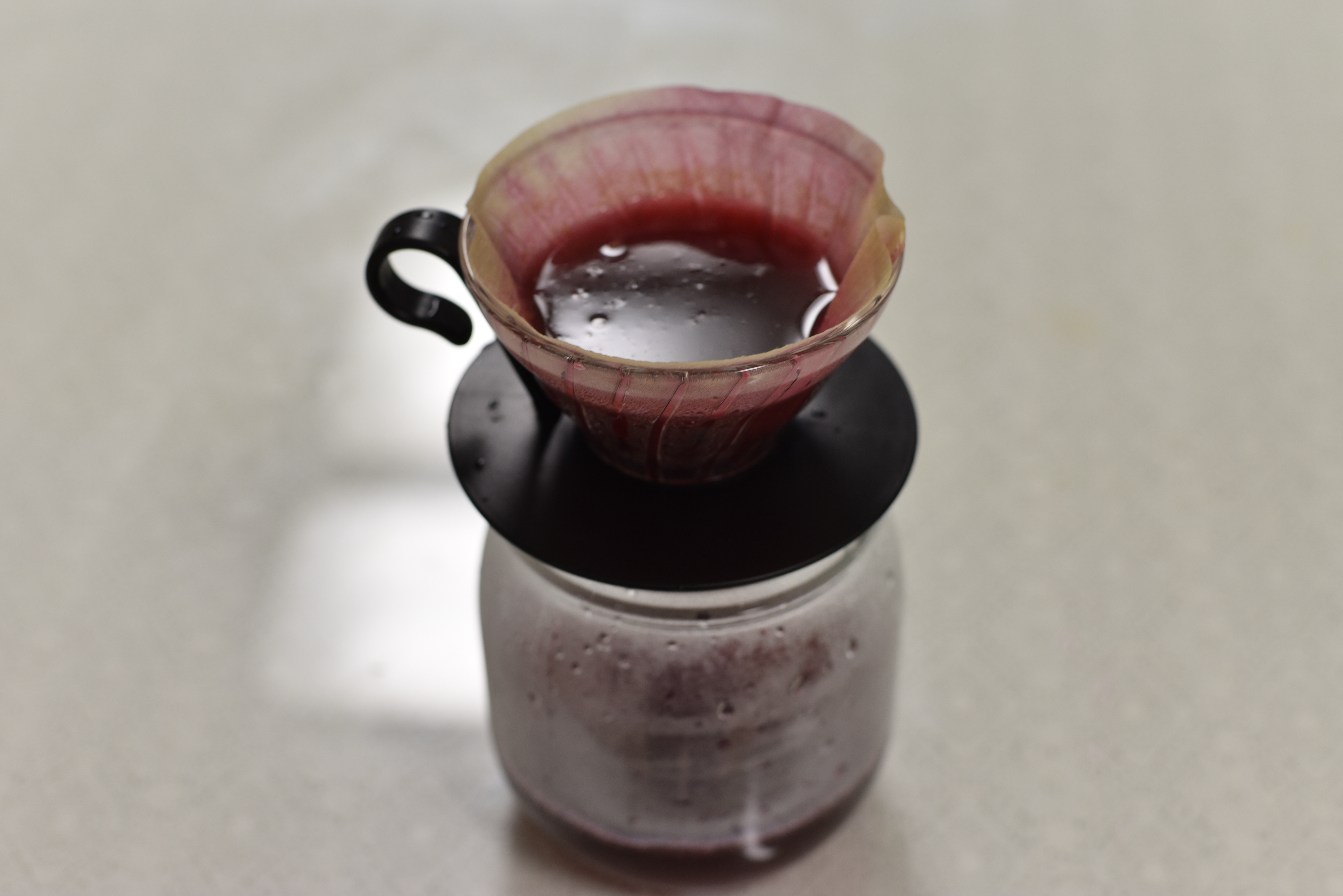 깔끔한 뱅쇼를 만들기 위해 커피여과지에 걸러주었는데요. 두번정도 시도하다 여과지가 막혀버려서 포기하고 베?에다가 짜버렸어요.